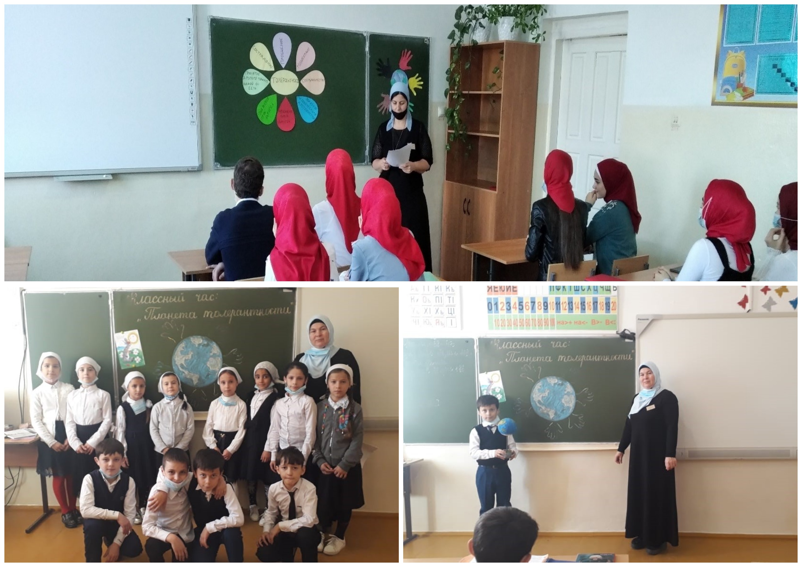 Классными руководителями 1-11 классов проводились классные часы и беседы: «Относись к другому так, как ты хотел бы, чтобы к тебе относились», «Забота, милосердие, внимание, чуткость», «Что такое толерантность?», «Толерантность – это дружба» и т.д.