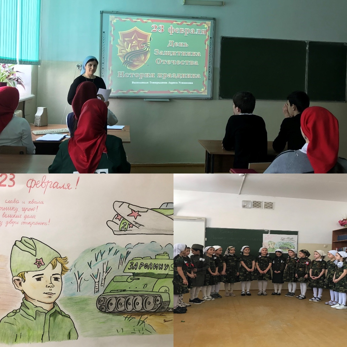 С 15 по 20 февраля 2021 года в рамках проведения тематической недели по военно-патриотическому воспитанию в МБОУ «Аллероевская СШ №2» были проведены мероприятия (классные часы, беседы, конкурсы рисунков и стенгазет, конкурс военно-патриотической песни и т.д.), посвященные "Дню защитника Отечества", на которых школьники более подробно узнали о том, кто такие защитники отечества, о разных видах войск, о военных профессиях.