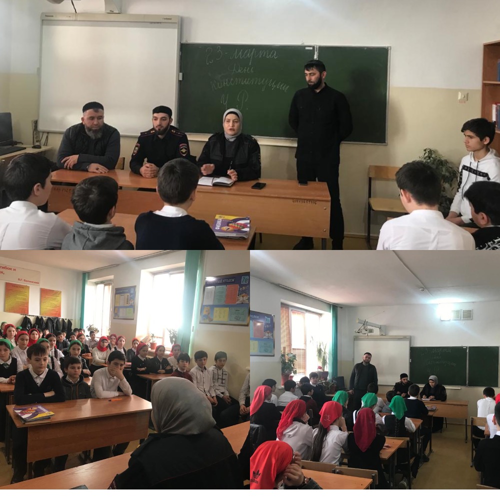 14.04.202114.04.2021г. состоялась встреча учащихся 9-11 классов с представителями ПДН, старшим инспектором ПДН ОМВД России по Курчалоевскому району ЧР, майором полиции - Сулеймановой А.Х-М., инспектор ПДН, лейтенант полиции – Вадалов А.А., инспектор ПДН, младший лейтенант полиции – Ибрагимов Б.Р.