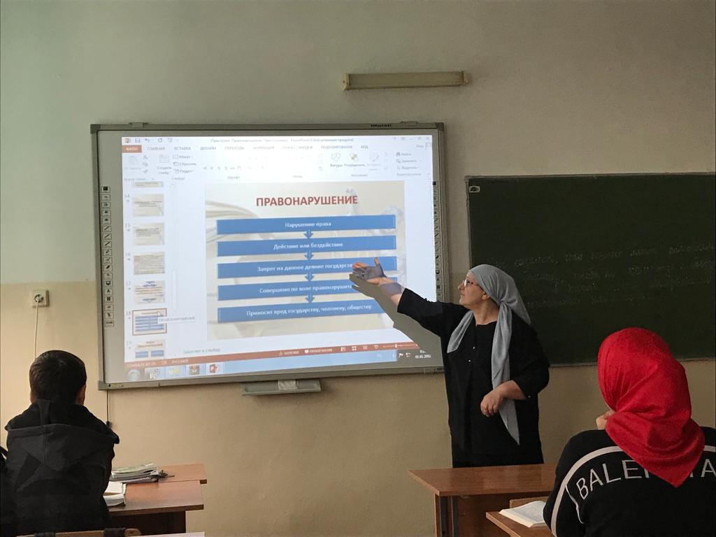 19 апреля учитель обществознания Джавтаева Р.А с целью профилактики и предупреждению правонарушений провела урок в 9 классе «Предупреждение правонарушений детей» .