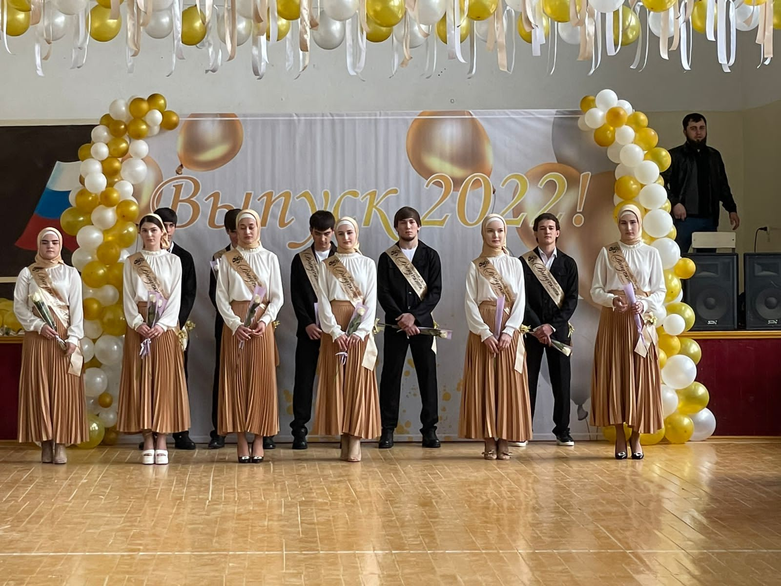 Мероприятие началось по обычаю с гимна РФ, ЧР, и было объявлено об открытии Торжественной линейки.Первые поздравительные слова выпускникам сказал директор школы Исмаилов С.А., пожелал ребятам успеха в достижении главной цели в жизни и вручил выпускникам грамоты. Также наших выпускников поздравили классные руководители и, конечно же, родители. Далее наших выпускников поздравили учащиеся 1 класса. Праздник проходил в доброй и теплой атмосфере.
