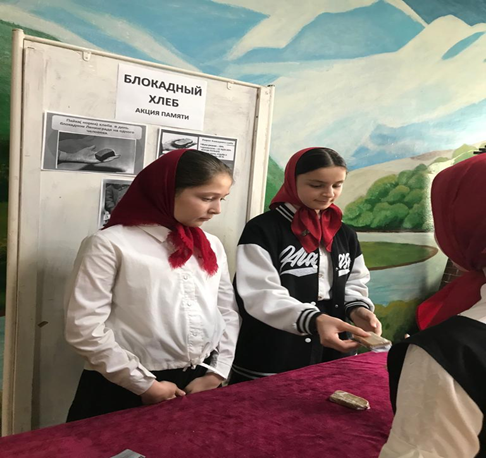 Проводились акции «Блокадное окно» и «Блокадный хлеб». Дети увидели и подержали в руках суточную норму хлеба в 125 грамм…