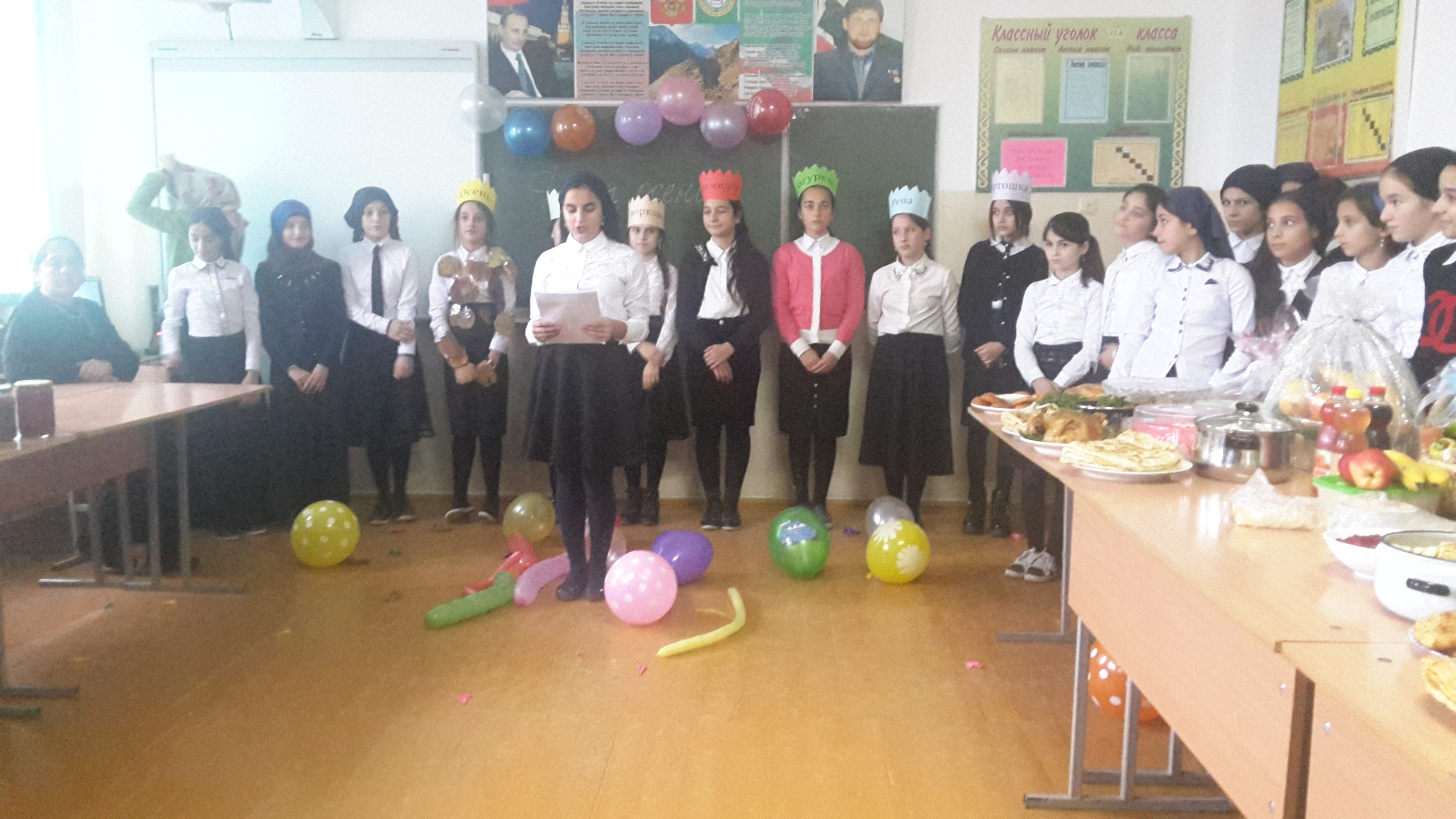 Перед учащимися выступила зам. дир. по УВР Джавтаева Р.А. За окнами сейчас осень… По – разному мы называем ее: холодной, золотой, щедрой, дождливой, грустной…Но, как бы там ни было, осень – прекрасное время года, это время сбора урожая, подведение итогов полевых работ, это начало учебы в школе, это подготовка к долгой и холодной зиме… И как бы там ни было на улице – холодно или тепло – родная земля всегда прекрасна, привлекательна, очаровательна! И народная мудрость гласит: «Осень печальна, а жит весело». Так пусть в этот октябрьский день звучит прекрасная музыка, льется рекой безудержный веселый смех, пусть вашему веселью не будет конца!