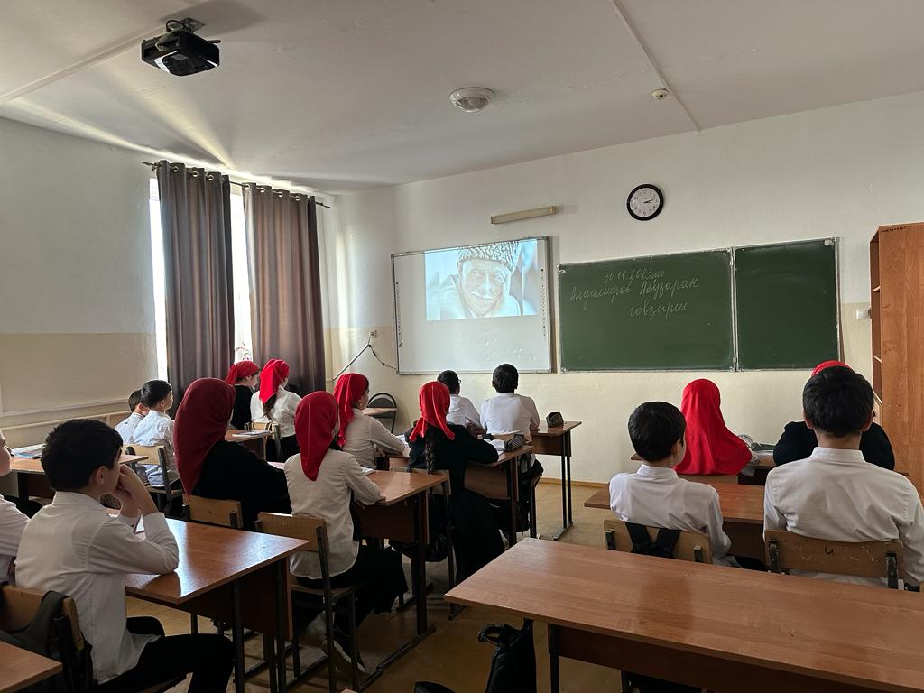 30.11.202330.11.2023г учителем чеченского языка и литературы Сайдулаевой З.К был проведен классный час "Айдамиров Абузаран говзалаш". Учитель познакомила учащихся с творчеством писателя и зачитала отрывки из полюбившихся произведений.