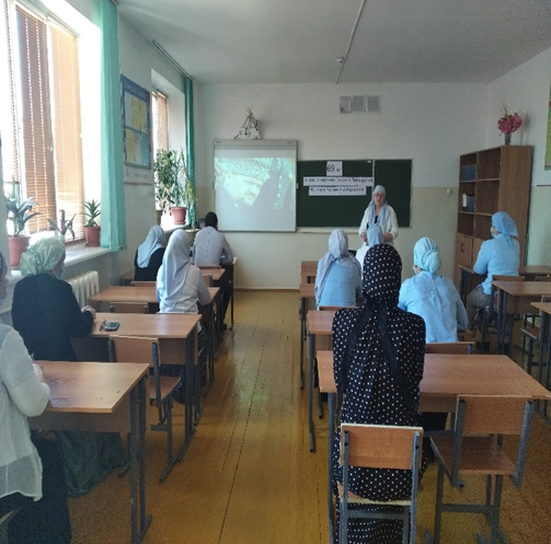 Зам.дир. по УВР Джавтаева З.А., рассказала коллегам о жизненном подвиге Ахмата-Хаджи Кадырова, о том, в какой сложный для страны период истории он возглавил регион, приняв на себя огромный груз ответственности, показали фильм, посвященный жизни и деятельности Первого Президента ЧР, Героя России А-Х. А. Кадырова.