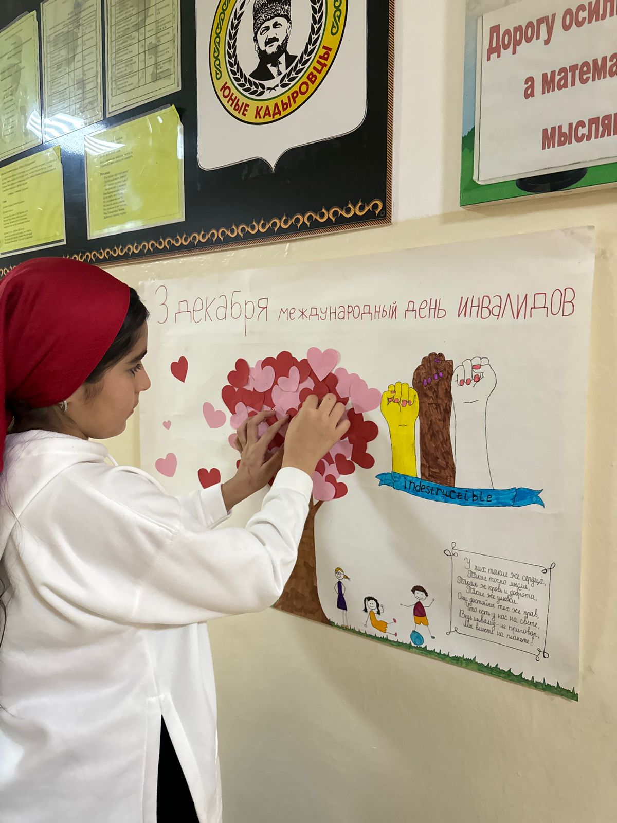 В рамках участия в мероприятиях посвященных Дню инвалида учащимися 8-х классов была проведена акция "Мы вместе". В знак поддержки и уважения "особенным людям" ребята клеили сердечки на символическое дерево.