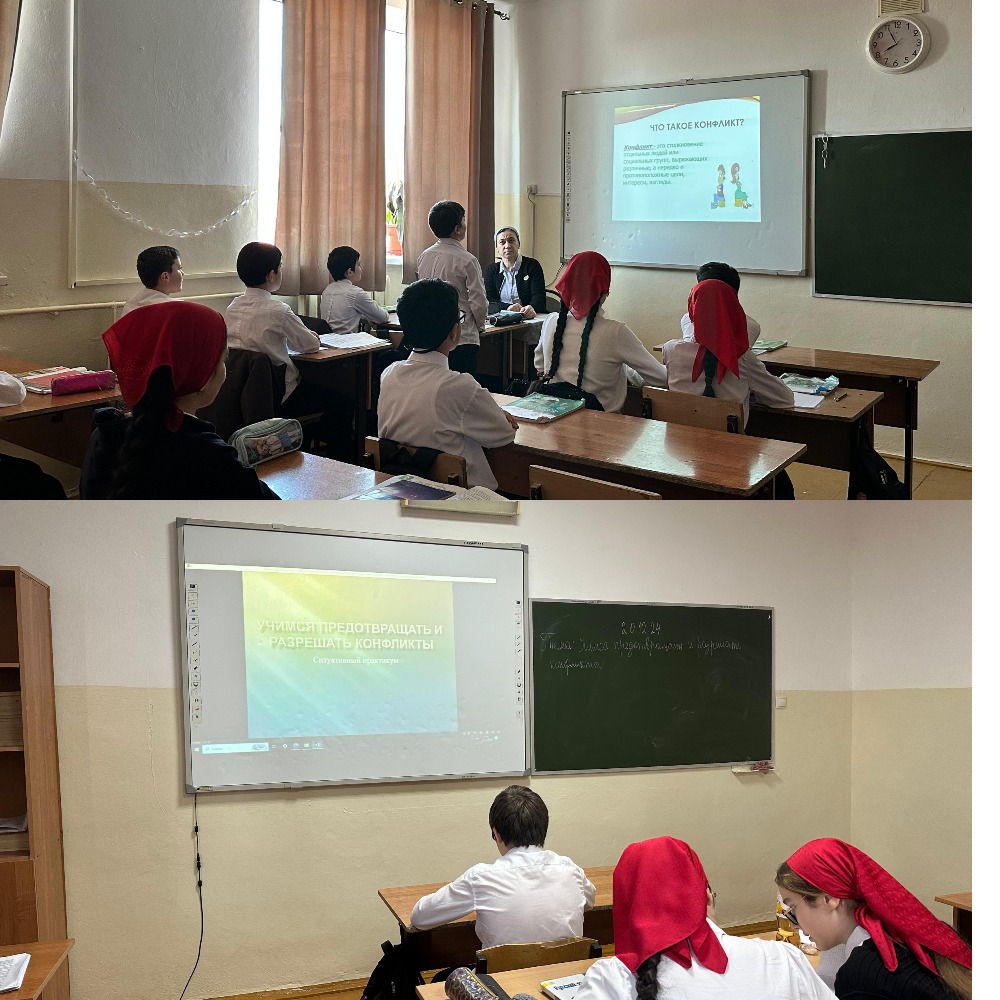 28.11.2024г классным руководителем 6б класса Даудовой А.Х. была проведена беседа с учащимися «Учимся предотвращать конфликты».