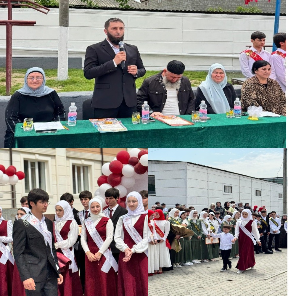 Право дать последний звонок предоставили ученику 11 класса Басаеву Абдул-Рахиму и ученице 1 «А» класса Ниниевой Марьям, ученице 11 класса Тутаевой Айзан и ученику 1 «А» класса Абдурахманову Мухаммаду.