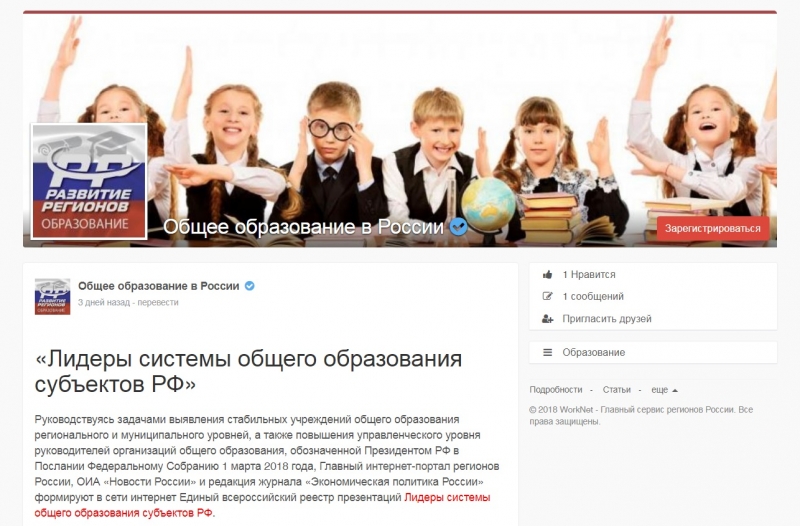 22.03.2018Руководствуясь задачами выявления стабильных учреждений общего образования регионального и муниципального уровней, а также повышения управленческого уровня руководителей организаций общего образования, обозначенной Президентом РФ в Послании Федеральному Собранию 1 марта 2018 года, Главный интернет-портал регионов России, ОИА «Новости России» и редакция журнала «Экономическая политика России» формируют в сети интернет Единый всероссийский реестр презентаций Лидеры системы общего образования субъектов РФ.