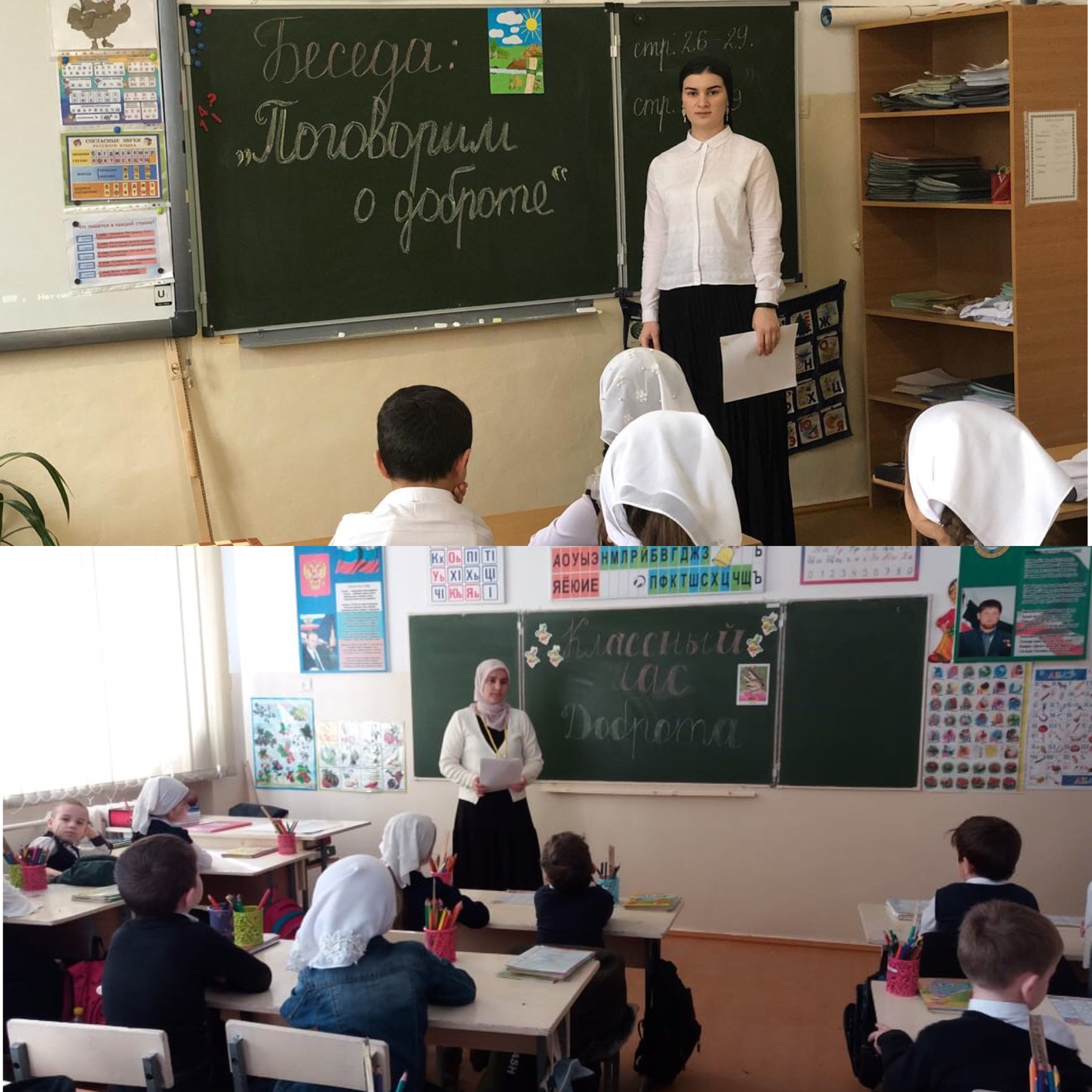 В рамках проведения «Недели Добра» 06 февраля во всех классах проведены беседы на тему: «Доброта творит чудеса», «Что такое доброта?», «Тепло доброго слова», «Добро и зло» «Поделись своей добротой». Ребята выяснили, что значит быть добрым человеком. Учащиеся приводили примеры из своей личной жизни, когда доброта творила истинные чудеса. Учащиеся вспоминали свои добрые дела к родителям, бабушкам, дедушкам, учителям т.е. к людям старшего поколения. Еще много теплых слов прозвучало во время бесед. Дети с удовольствием участвовали в обсуждении темы, связанной с добротой, заботой. Судя по всему, после этих бесед детям захотелось проявить доброту не только к близким, но и к совершенно незнакомым людям, нуждающимся в помощи.